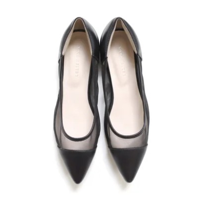 Low heel pumps, flat pumps, 1cm heel pumps, women's, easy to walk in, pain-free, CX2415 (black (tulle))